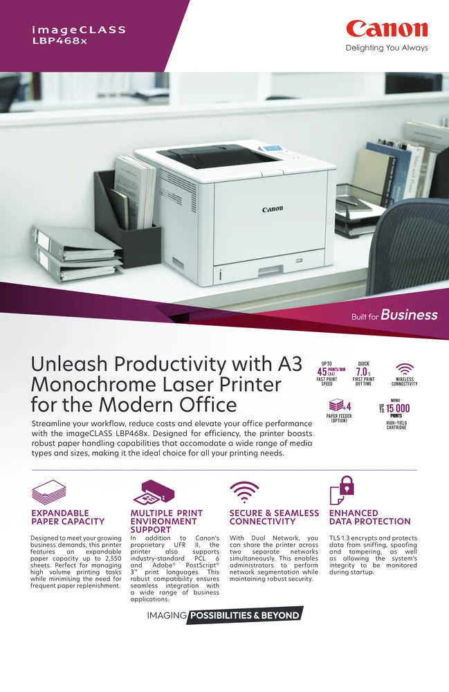Canon imageCLASS LBP468x A3 Monochrome Laser Printer – High-Speed, Professional-Grade Printing for Modern Offices
