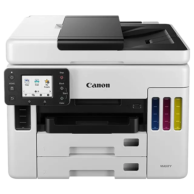 Meet the Canon MAXIFY GX7070 — a business-class all-in-one wireless ink tank printer designed for extensive print, scan, copy, and fax needs. The MegaTank refill system delivers ultra-high page yields with low running costs, while single-pass 2-sided scanning, auto duplex printing, and robust connectivity keep workflows fast and efficient.