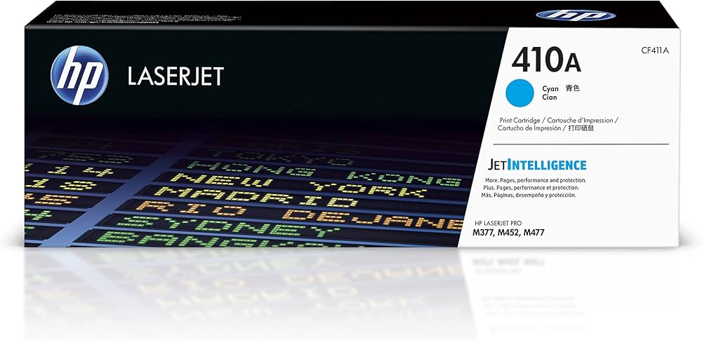 Enhance your color printing with the HP CF411A Cyan Original LaserJet Toner Cartridge – trusted for vivid color quality and professional results.